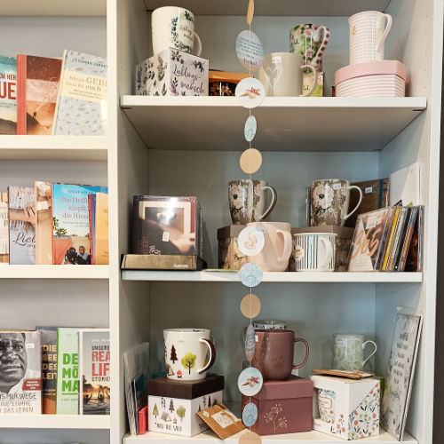 In unserer Bücherecke findest du eine Auswahl an spannenden Biograhien, Bibeln und interessante Sachbücher zu verschiedenen Themen. Zusätzlich im Sortiment gibt es auch kleine Geschenk-Accessoires, wie Tassen, Blechschilder… und vieles mehr.